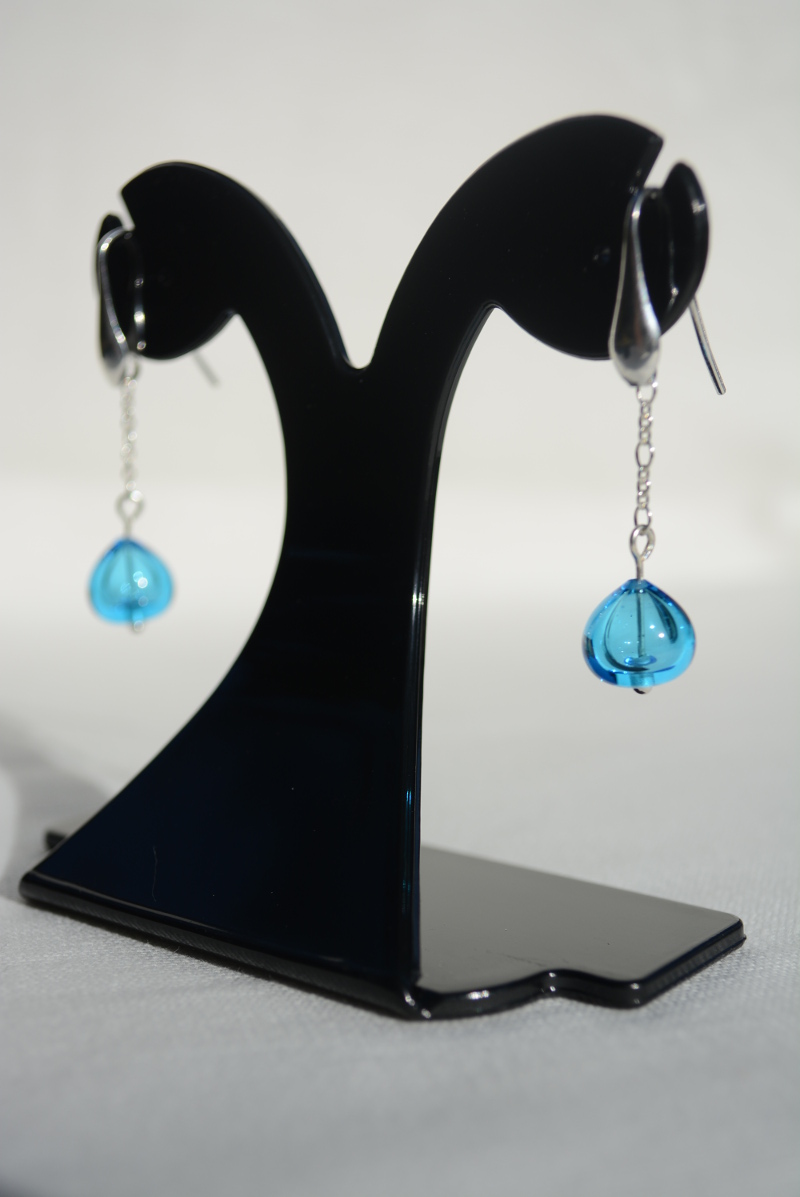 Boucles d’oreilles en forme de goutte en verre de Murano et Argent 925 entierement réalisé à la main dans notre atelier de Pernes les Fontaines.